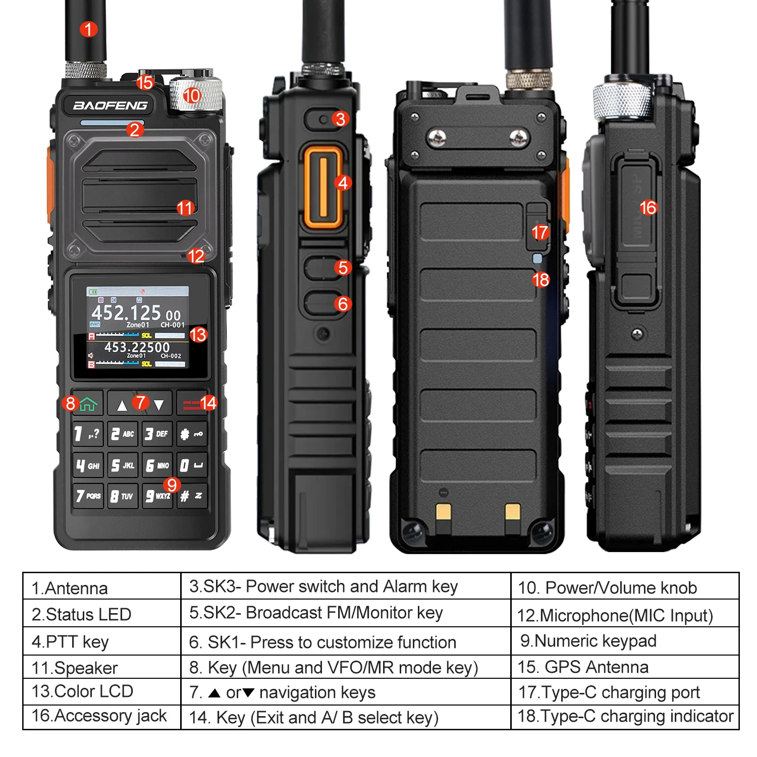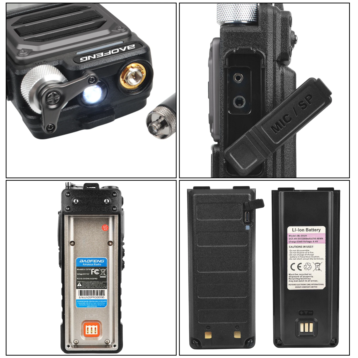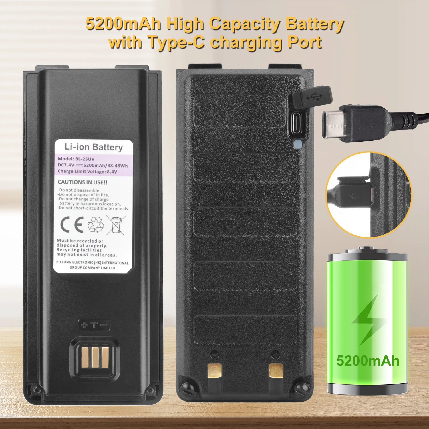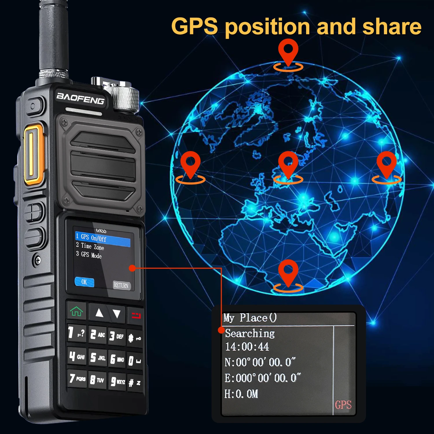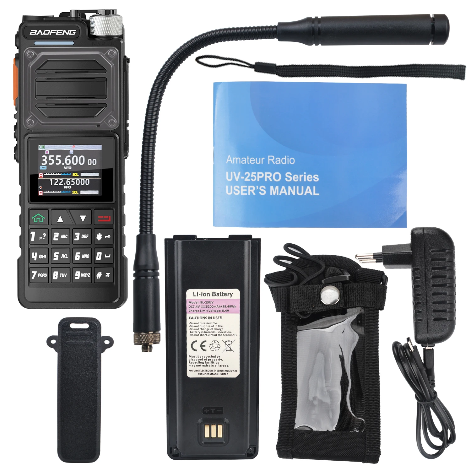 Baofeng UV-25PRO GPS Walkie Talkie 10W 1000Ch Air Band Multi-band FM Vox Two Way Radio w/ 5200mAh USB-C Rechargeable Battery