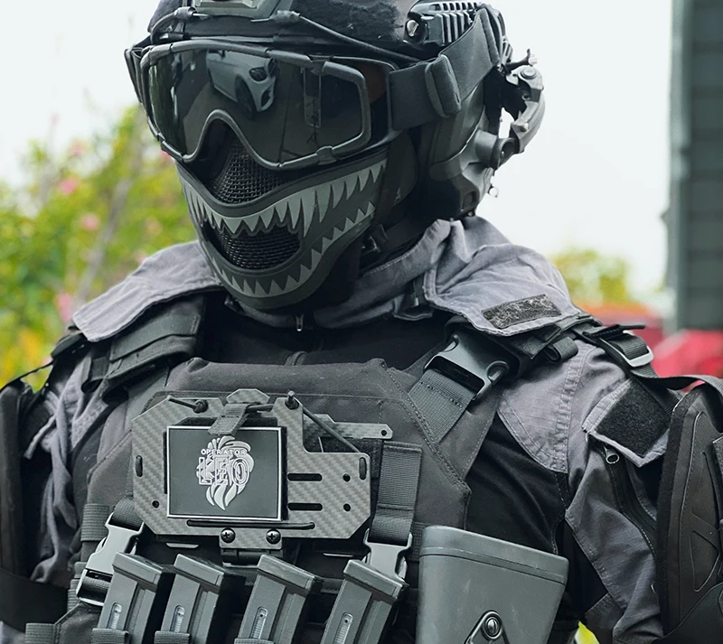 Shark jaw morale patch with hook backing for fixing onto the mask
