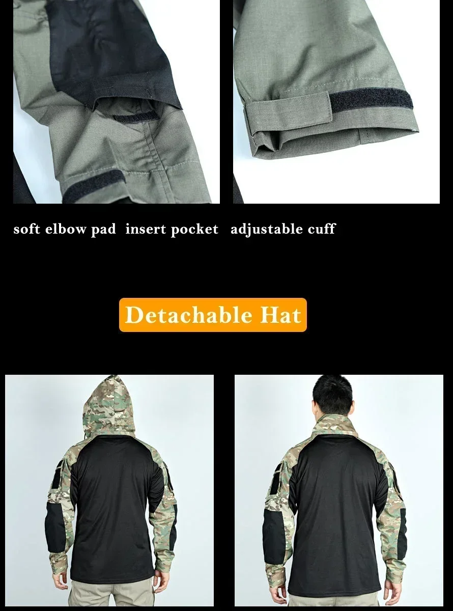 Tactical Combat Shirts Men Long Sleeve Breathable T-shirt Camo Hooded Quick-dry CS Paintball T-Shirt Tops Wear-resisting![]()