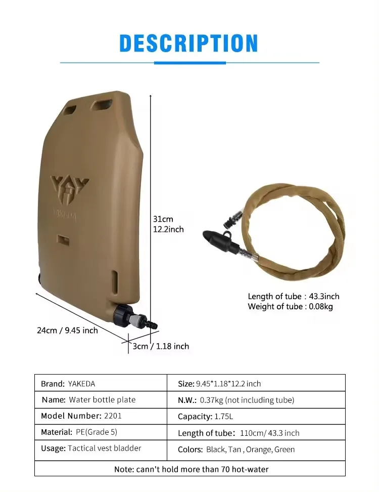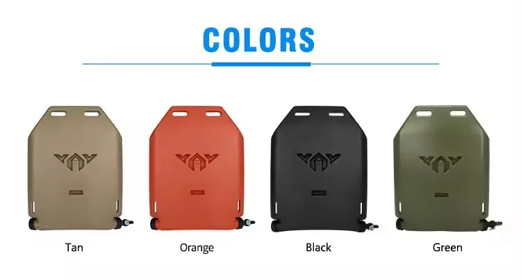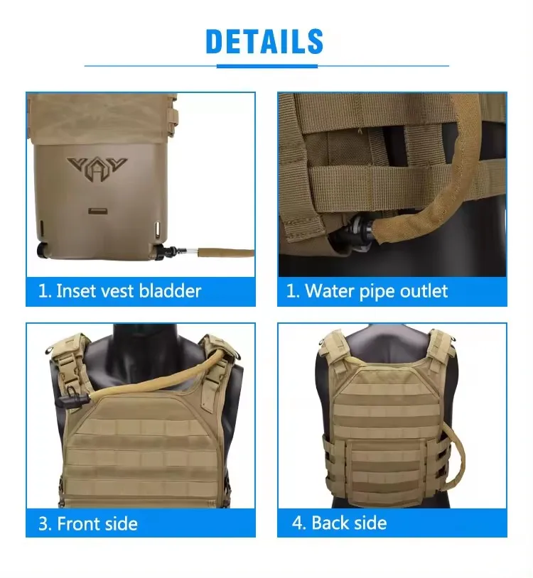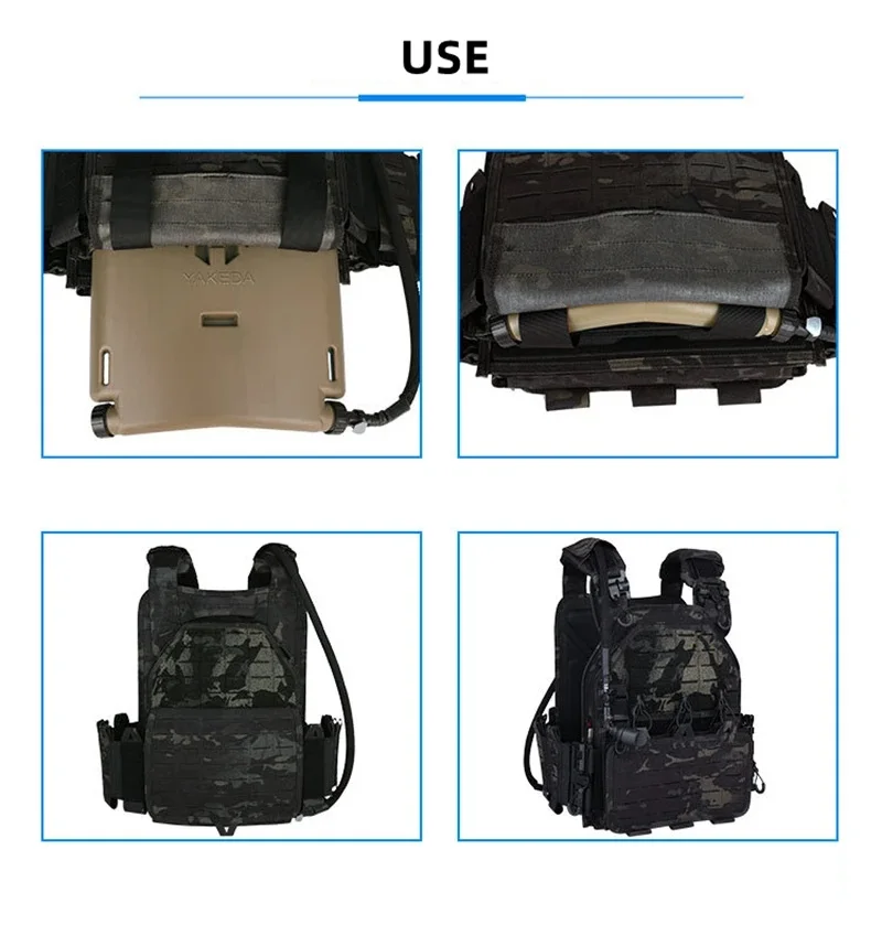 Yakeda Water Bladders. These water bladers hold a large volume of water in them and can be inserted into any standard SAPI Body Armor insert on any plate carrier. They can also be frozen in your freezer, providing industry leading cooling technology, and an all day supply of ice cold water available through a quick detach drinking tube.